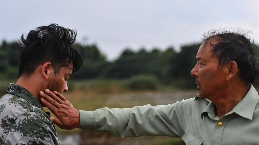 7月18日,陳申桃和兒子在東升堤附近處理一起泡泉險(xiǎn)情。