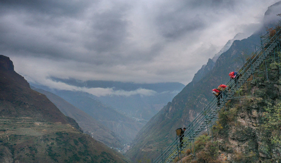實(shí)拍懸崖村的“雙十一” 背著快遞包裹上天梯
