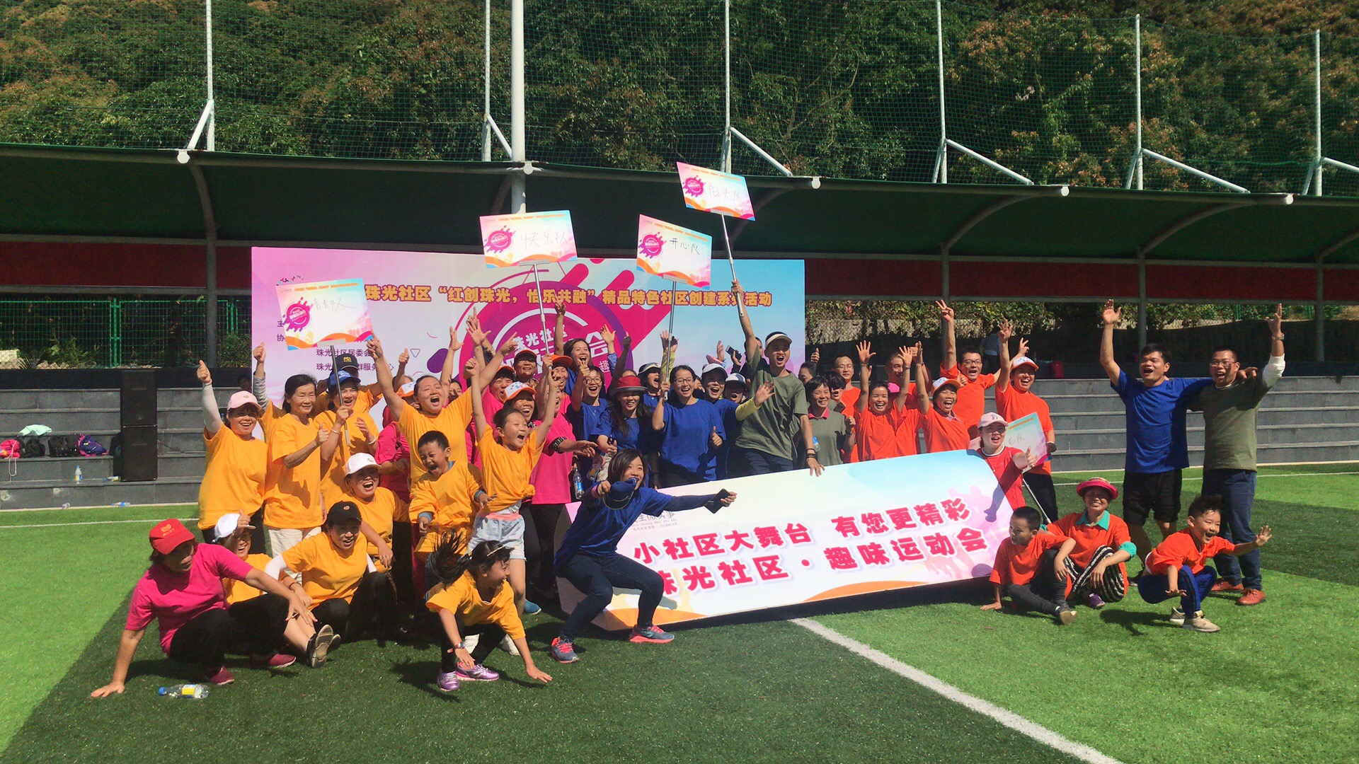 深圳新聞網(wǎng)訊 這個(gè)周末在南山桃源街道的珠光社區(qū)足球場(chǎng)變成五彩繽紛歡樂(lè)的海洋了,因?yàn)轭伾驗(yàn)榧饨?,因?yàn)榧で?,因?yàn)槿の哆\(yùn)動(dòng)會(huì)開(kāi)始了!