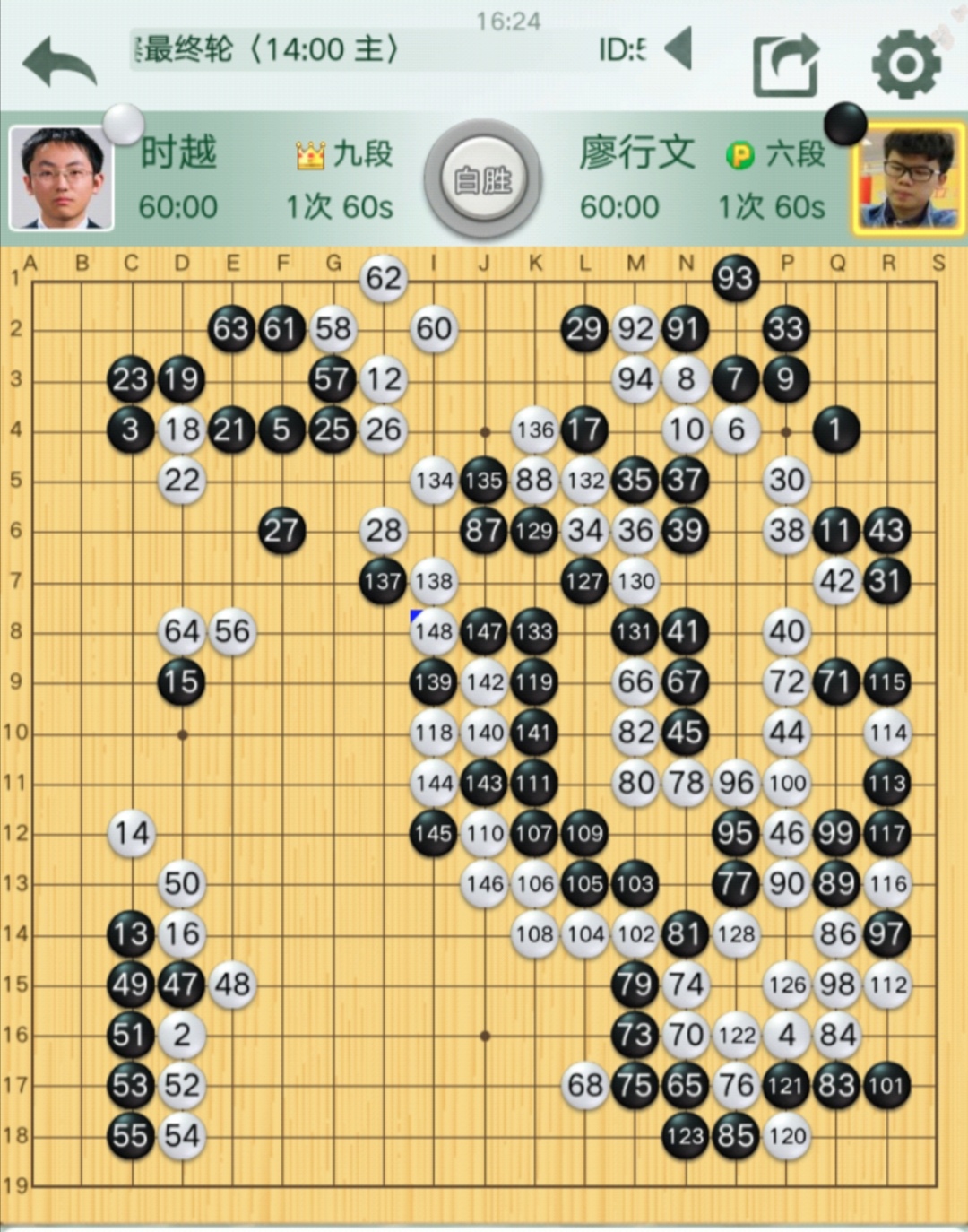 二臺(tái):時(shí)越九段(主將)對(duì)廖行文六段