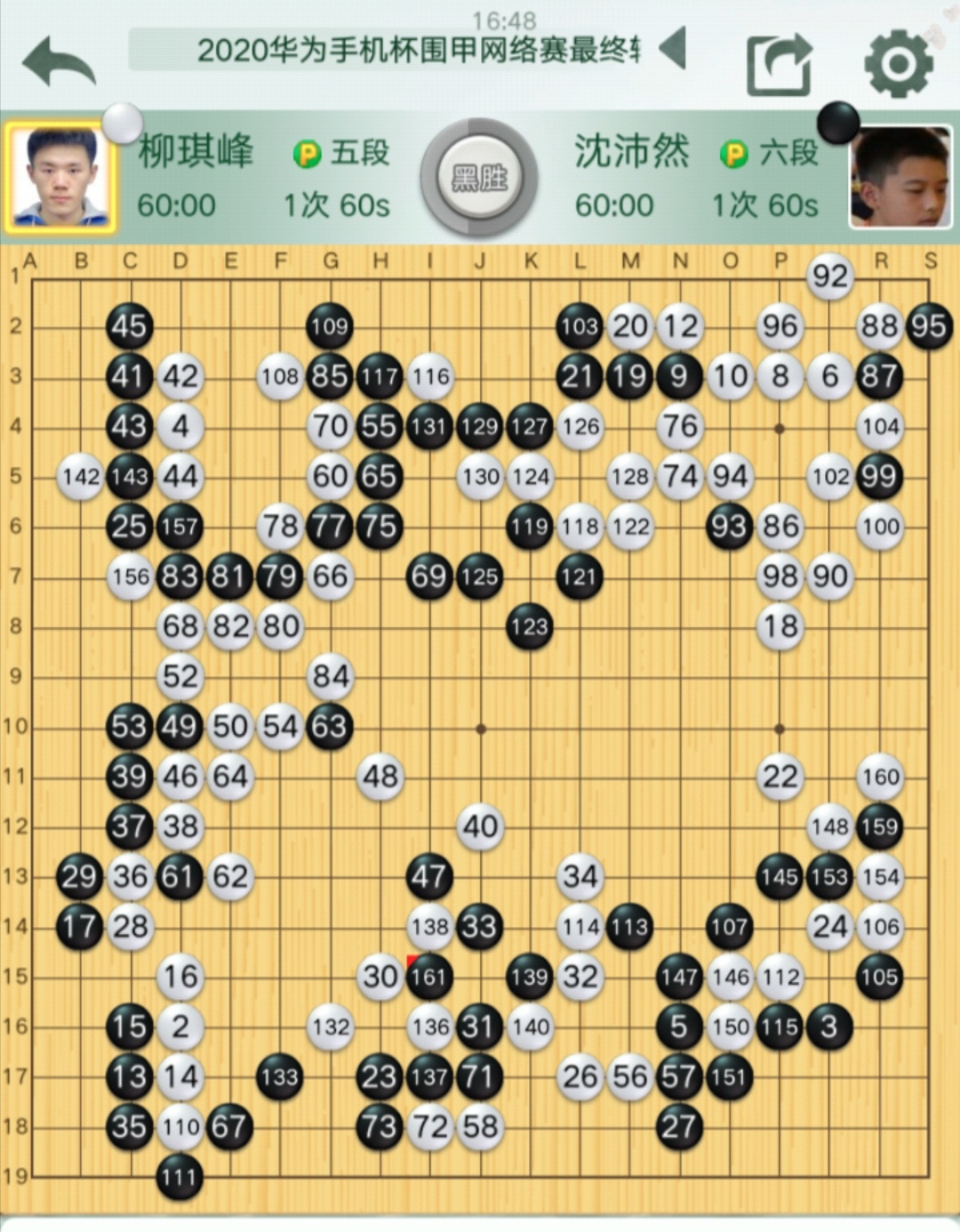 一臺(tái):沈沛然七段對(duì)柳琪峰五段