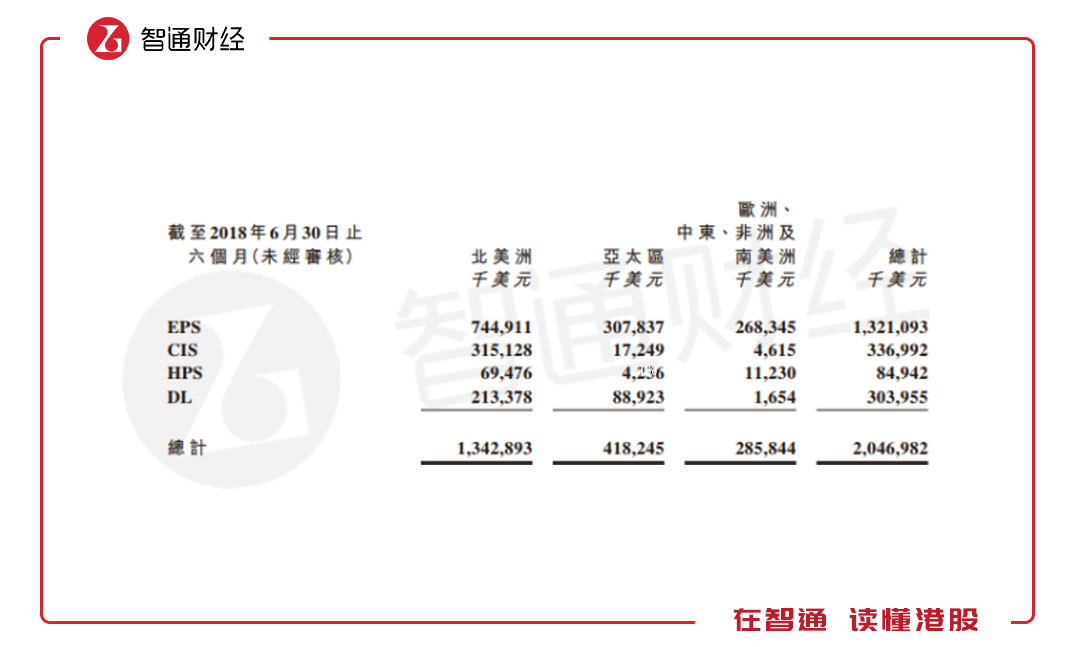 根據(jù)該公司業(yè)務布局情況,核心的EPS主要布局在北美洲地區(qū),收入7.45億美元,同比增長3%,收入占比36.4%,亞太區(qū)為3.08億美元,同比增長2.7%,北美及亞太區(qū)的EPS收入占比達51.45%。所有產品布局在亞太區(qū)及北美區(qū)收入合計17.61億美元,同比2.2%,收入占比86.03%。