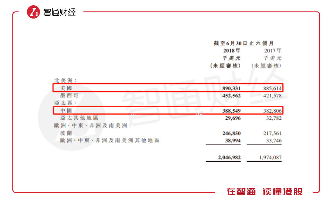從國家分布上看,該公司的分布的有四大國家,分別為美國、墨西哥、中國及波蘭,上半年收入占比分別為43.4%、22%、19%及12.1%,合計占比96.5%,這四大國家收入增速分別為0.5%、7.4%、1.5%及13.5%,基本和所在國家的汽車銷量增速保持一致。中國和美國兩大市場收入占比62.4%。