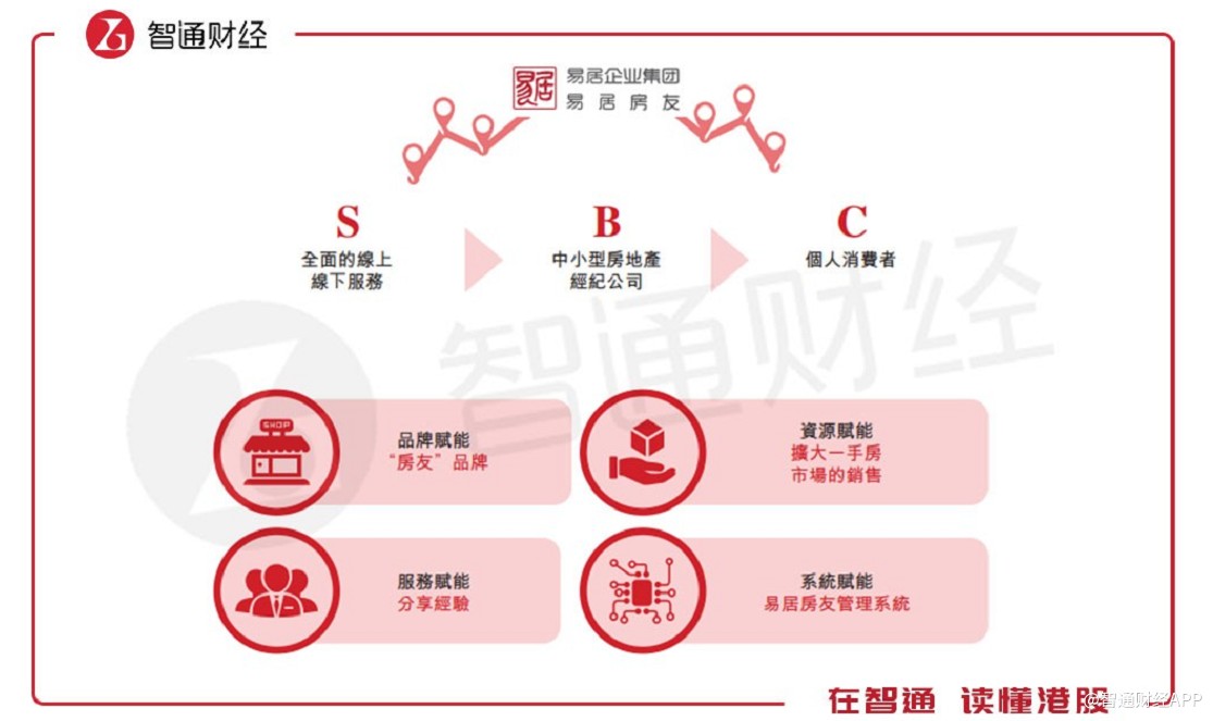易居房友S2B2C的模式之新在于它不直接開展二手房經(jīng)紀業(yè)務,也不開設二手房經(jīng)紀公司,而是賦能并整合房友品牌下的中小微房地產(chǎn)經(jīng)紀公司,向中小微房地產(chǎn)經(jīng)紀公司(B)提供在線線下綜合服務(S),以幫助其更好的服務個人客戶(C)。
