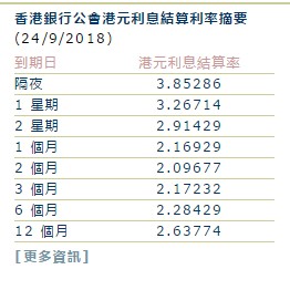 7天港元HIBOR報3.26714%,上升137.9個基點,為2008年9月以來最大漲幅。
