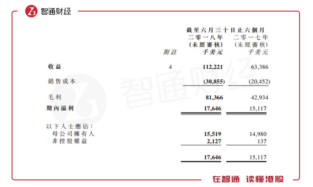 遠的不說,就以今年中期為例,該公司收益1.12億美元(單位下同),同比增長77%;凈利潤1552萬,同比增長3.3%。毛利約為8140萬,較2017年同期的約4290萬增長89.7%。毛利率為72.5%,高于去年同期的67.7%。