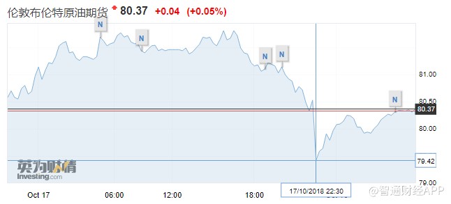 截至發(fā)稿,報80.37美元/桶,升0.05%或0.04點。WTI原油也有所下跌,報69.94美元/桶。