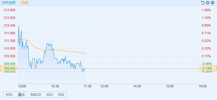 智通財(cái)經(jīng)APP獲悉,騰訊(00700)今日除凈,早盤(pán)于310元附近徘徊,暫高低位312.8元及308.6元。截至11時(shí)33分,跌0.19%,報(bào)價(jià)309港元,成交額11.53億。
