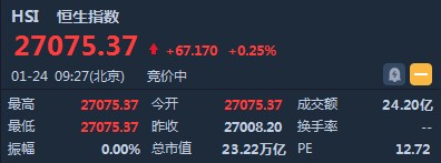 智通財經(jīng)APP獲悉,恒生指數(shù)開盤高開0.25%,報27075.37點(diǎn)。國企指數(shù)漲0.31%,報10663.49點(diǎn)。紅籌指數(shù)漲0.64%,報4328.62點(diǎn)。大市盤前成交24.21億港元。隔夜美股震蕩收高,港股ADR全日偏軟。市場對月底中美談判有所憧憬。
