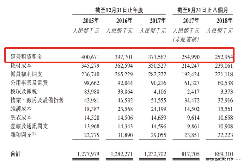 從招股書披露的公司銷售成本來(lái)看,雖然2015-2017年公司經(jīng)營(yíng)租金金額持續(xù)降低,但仍然占公司銷售成本的30%以上。