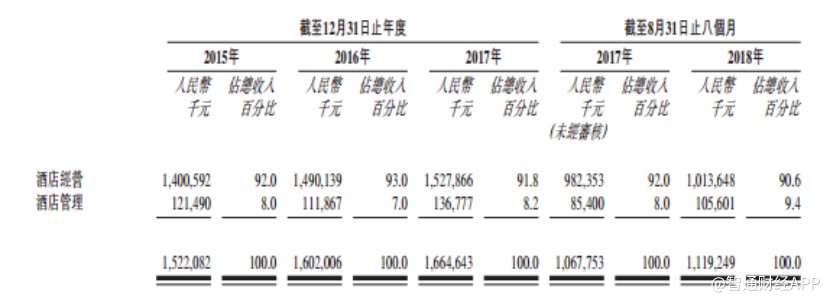 招股書顯示,截至2018年8月底,公司酒店經(jīng)營(yíng)業(yè)務(wù)下?lián)碛?1家酒店,其中29家租賃酒店和2家自營(yíng)酒店;公司酒店管理業(yè)務(wù)下?lián)碛?09家酒店,其中96家為全方位服務(wù)管理酒店及13家特許經(jīng)營(yíng)酒店。