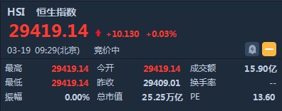 智通財(cái)經(jīng)APP獲悉,恒生指數(shù)開盤漲0.03%,報(bào)29417.14點(diǎn)。國(guó)企指數(shù)漲0.06%,報(bào)11681.76點(diǎn)。紅籌指數(shù)跌0.12%,報(bào)4675.12點(diǎn)。大市盤前成交15.9億港元。隔夜美股三大股指集體收高。今日清晨,香港金融管理局再度入市干預(yù),買入20.1億港元,以捍衛(wèi)聯(lián)系匯率機(jī)制,此乃金管局今年第3度出手。
