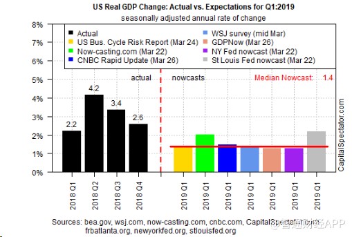 據(jù)智通財經(jīng)APP了解,美國經(jīng)濟(jì)分析局(BEA)將于4月下旬發(fā)布經(jīng)濟(jì)報告,根據(jù)《資本觀察家》(Capital Spectator)編制的一組預(yù)估數(shù)據(jù)所得,美國第一季度GDP將繼續(xù)放緩至1.4%(經(jīng)季節(jié)性調(diào)整的年增長率)。此預(yù)估值與本月早些時候公布的預(yù)測維持一致。