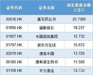 據(jù)智通財(cái)經(jīng)APP統(tǒng)計(jì),36只新股中,僅基石藥業(yè)-B、貓眼娛樂、中國旭陽集團(tuán)、新東方在線、德信中國、康希諾生物-B、開元酒店等7只新股募資凈額超過10億港元,其中基石藥業(yè)-B募資總額最高,達(dá)20.74港元。