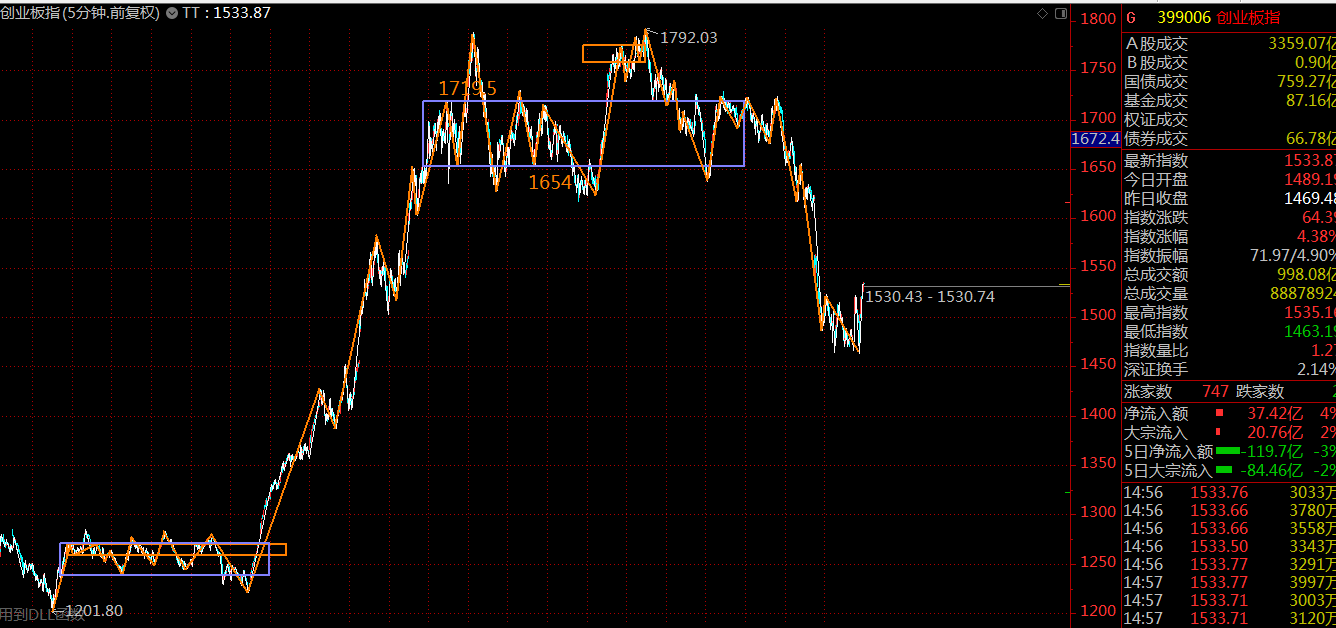創(chuàng)業(yè)板這里走勢結(jié)構(gòu)粗暴直接的多,目前已遠(yuǎn)離上方的三十分鐘中樞,壓力位在上方中樞下沿1616點(diǎn)附近,空間較大。相對來說,短期小票走勢可能會強(qiáng)一些。