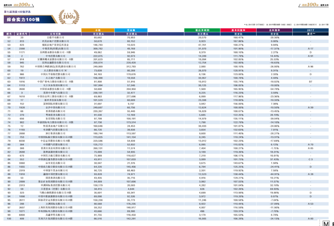以客觀、專業(yè)、公正、準(zhǔn)確為指導(dǎo)準(zhǔn)則,通過(guò)評(píng)選出年度表現(xiàn)優(yōu)秀的港股上市公司,歷屆“港股100強(qiáng)”頒獎(jiǎng)典禮致力于為投資者提供有價(jià)值的投資參考,推進(jìn)內(nèi)地與香港資本市場(chǎng)數(shù)據(jù)的整合,推進(jìn)國(guó)家產(chǎn)業(yè)結(jié)構(gòu)升級(jí)、經(jīng)濟(jì)的發(fā)展。