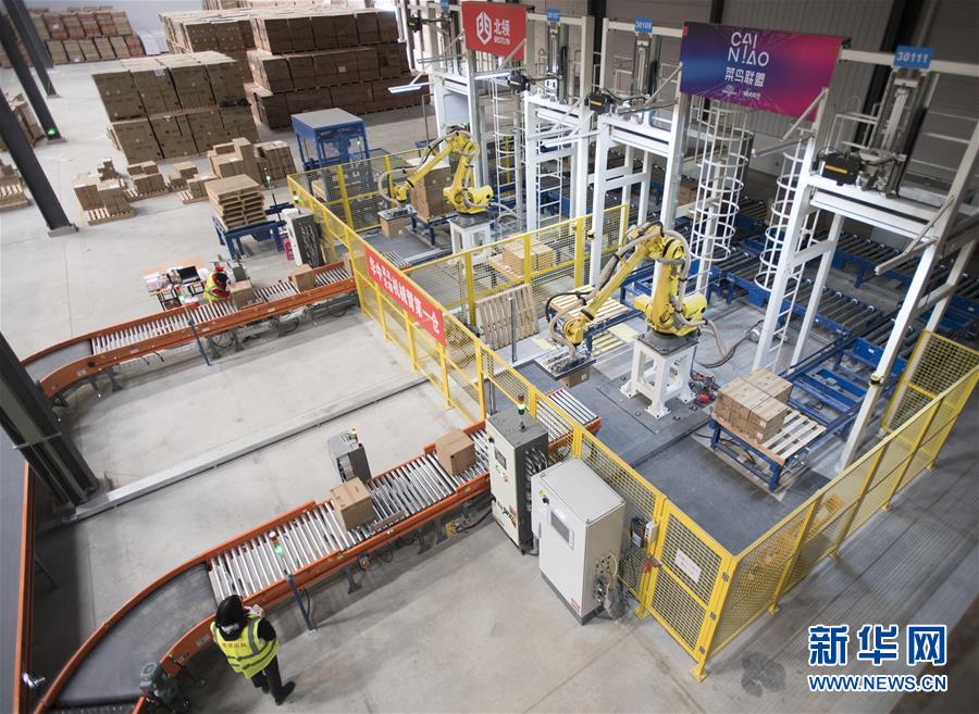 ??? 近日,在菜鳥網(wǎng)絡(luò)武漢黃陂物流倉(cāng)內(nèi),一組機(jī)械臂在進(jìn)行搬運(yùn)作業(yè)。近日,菜鳥網(wǎng)絡(luò)在湖北武漢黃陂物流倉(cāng)庫(kù)啟用智能機(jī)械臂來搬運(yùn)商品。據(jù)介紹,每組機(jī)械臂一個(gè)小時(shí)能搬運(yùn)1000件商品,可以24小時(shí)不間斷作業(yè)。這些機(jī)械臂的投入,有助于緩解高峰期貨物處理壓力,提高發(fā)貨速度,被工程師親切地稱為“麒麟臂”。新華社記者肖藝九攝