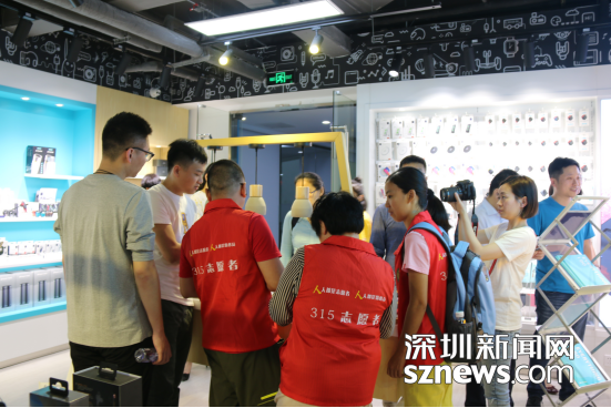 深圳市消費者委員副秘書長于喜峰、手機殼項目負責人胡鑫以及消委會代表、消費者代表約三十人對仁清卓越進行了現(xiàn)場體察。