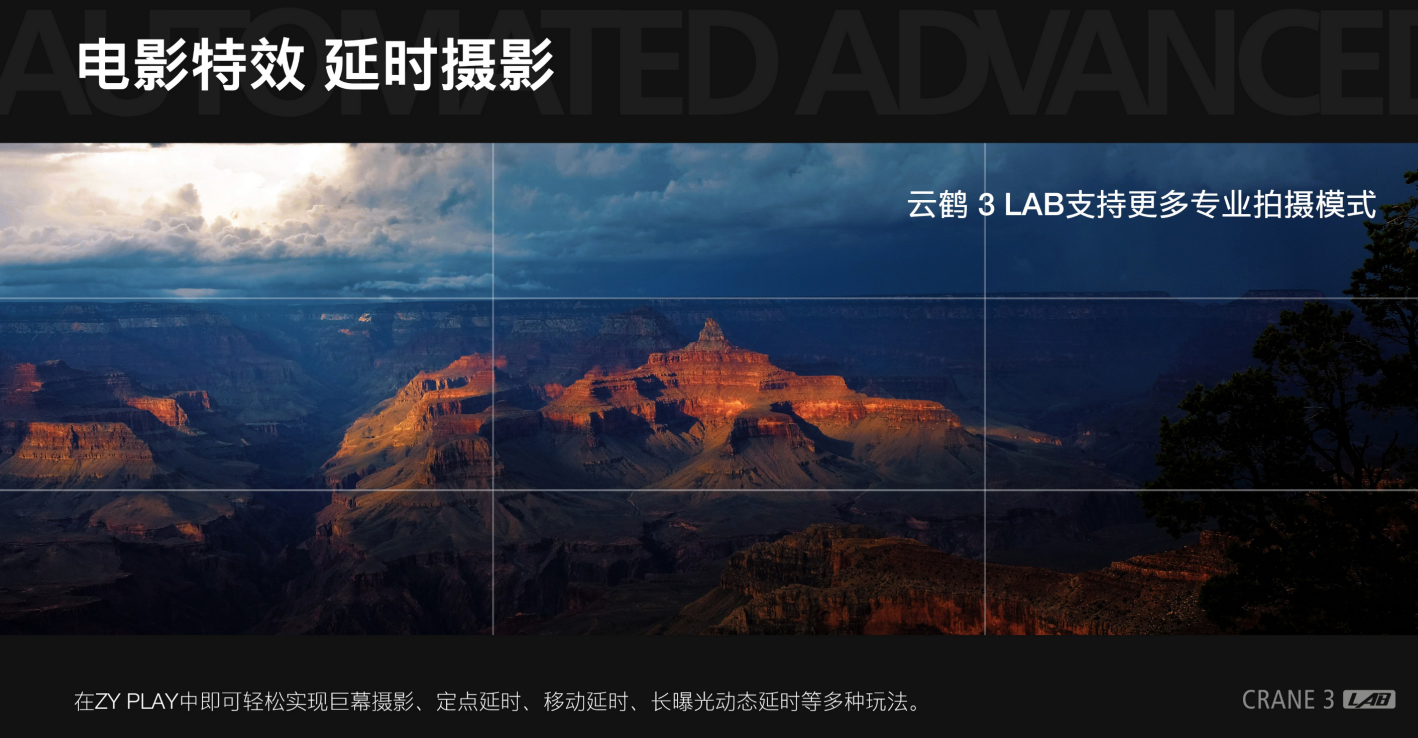 云鶴3 LAB針對延時(shí)攝影作出深度優(yōu)化,探索出更多高階玩法:靜態(tài)延時(shí)、移動延時(shí)、軌跡延時(shí)、大范圍延時(shí)、三軸延時(shí)、焦點(diǎn)延時(shí)、巨幕攝影、三維夢境,瘋狗模式。