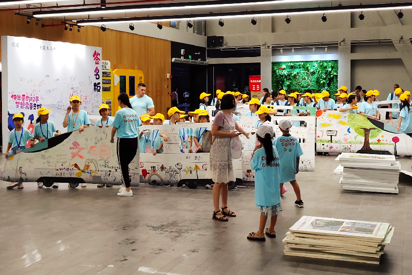 深圳新聞網(wǎng)2019年8月2日訊 兩列長達24米,車身由深圳百名兒童彩繪設(shè)計的小火車,帶著他們的夢想,1日下午在深圳龍崗紅立方青少年館“開出”,開啟暑期文明生活之旅。