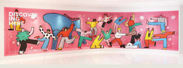 此外,4位國際插畫家聯合打造藝術櫥窗展覽《F ashion Street 》,則為卓悅中心帶來了更加色彩斑斕的視覺體驗:Tess Smith Roberts(英國)明快的色彩與童趣的風格,充滿治愈感;Lisa Tegtmeier(德國)以抽象的幾何形人物,簡單卻引人注目;Jisu Choi(韓國)通過平面中的立體描繪,展現出卓悅中心奇幻豐富的體驗;Decue Wu(美國)則以“城市日記”的理念,充分展現出“城市T臺”的時尚氣質。