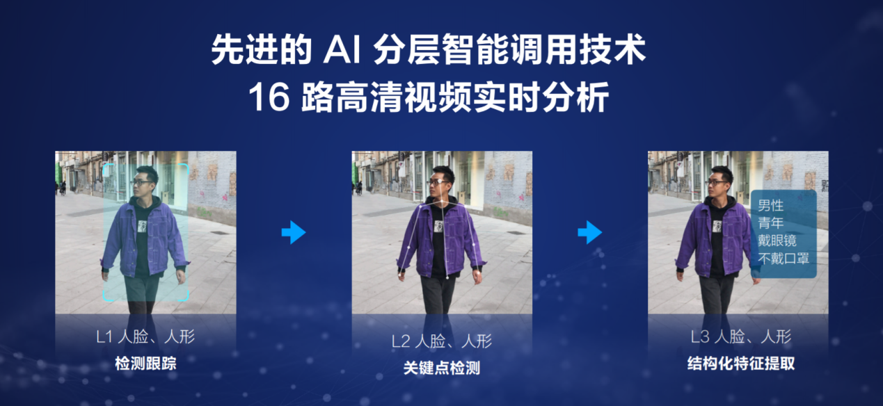 針對邊緣計算的硬件架構(gòu)特點(diǎn),360家庭安全大腦·旗艦版設(shè)計了邊緣側(cè)AI調(diào)度引擎,分層智能調(diào)用,從人臉人形的基礎(chǔ)檢測跟蹤到關(guān)鍵點(diǎn)提取和圖像優(yōu)選再到結(jié)構(gòu)化特征提取比對,層層遞進(jìn),最終實(shí)現(xiàn)了邊緣側(cè)單機(jī)16路1080P高清視頻實(shí)時解碼分析處理。