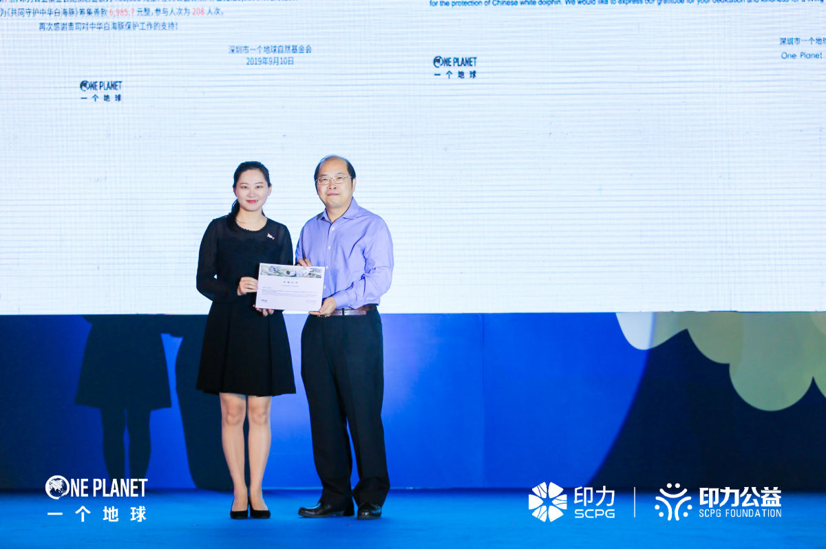 保護(hù)中華白海豚除了政府在領(lǐng)航前行,更有像印力公益基金會(huì)等組織在默默付出、前赴后繼,他們以最實(shí)際的支持,為推動(dòng)人與自然和諧的相處做出貢獻(xiàn),喚醒每個(gè)人內(nèi)心深處的海洋夢!在熱烈的掌聲中,迎來了一個(gè)地球自然基金會(huì)為印力公益基金會(huì)頒發(fā)捐贈(zèng)證書,感謝印力公益基金會(huì)為中華白海豚保護(hù)項(xiàng)目提供了捐贈(zèng),以實(shí)際行動(dòng)推動(dòng)了生物多樣性保護(hù)。