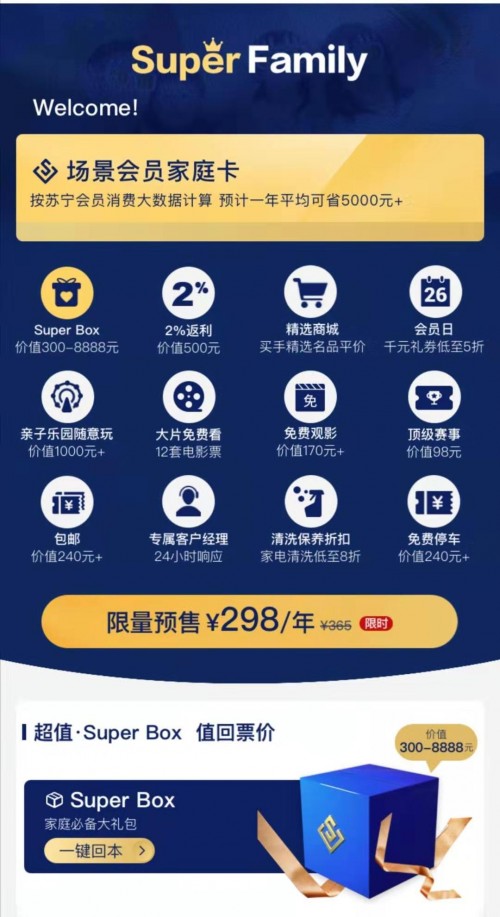 年初,蘇寧易購?fù)瞥?S UPER VIP專屬會員特權(quán),母嬰家庭只需辦理價(jià)值149元的 Super VIP會員卡,再加150元,即最高花費(fèi)299元,就能在蘇寧紅孩子游樂不限時(shí)間、不限次數(shù)的玩上一整年。貫穿全年的紅粉會員答謝會,通過海量母嬰正品、專業(yè)的育嬰師服務(wù)和特色會員福利活動圈粉超千萬。而最新升級的蘇寧Super Family會員更是以承包一家人的衣食住行為出發(fā)點(diǎn),融合了蘇寧體育、蘇寧影城、蘇寧金融、蘇寧紅孩子、蘇寧廣場等業(yè)態(tài),共12項(xiàng)特權(quán),發(fā)力會員場景零售,打造了完善的會員生態(tài)服務(wù)。