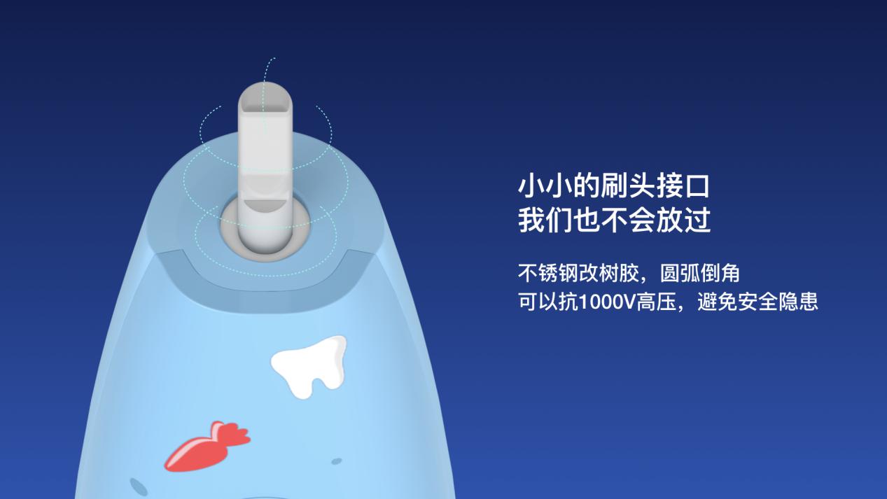 就連小小的刷頭接口,佳潔士S7000K也悉心考慮,采用樹膠材質(zhì),圓弧倒角設(shè)計,可抗1000V高壓,避免安全隱患。
