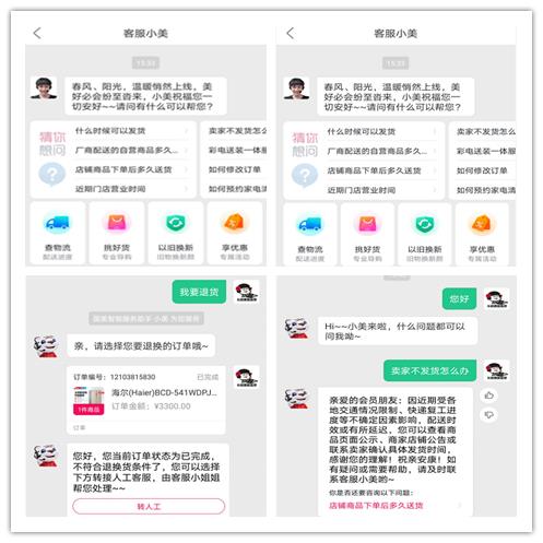 智能客服小美還賦能了人工在線客服會(huì)話輔助功能,可根據(jù)用戶問(wèn)題,自動(dòng)在工作臺(tái)右側(cè)給出參考答案,供人工客服選擇回復(fù)用戶,客服工作效率提升近70%。在系統(tǒng)賦能的同時(shí),客服中心也合理進(jìn)行了在線客服人員實(shí)時(shí)靈活調(diào)配,應(yīng)對(duì)話務(wù)進(jìn)線波動(dòng),截至2020年3月中旬,在線客服平均接通率達(dá)到95%以上。