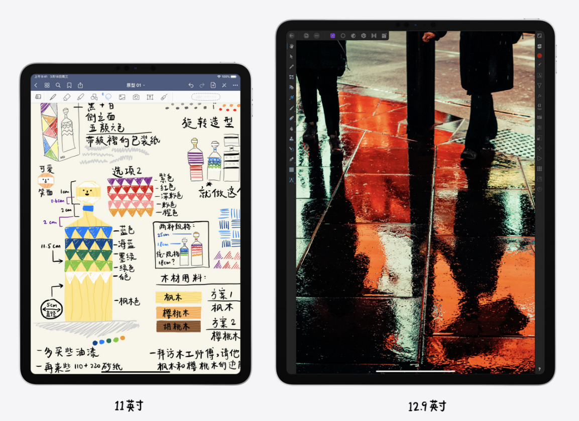 攝像頭一直不是iPad的強(qiáng)項(xiàng),而全新的iPad Pro由兩枚鏡頭組成,一枚是廣角的標(biāo)準(zhǔn)鏡頭,1200萬像素、f/1.8的最大光圈,另一枚是超廣角鏡頭,1000萬的像素、f/2.4的最大光圈,兩枚鏡頭都支持4K@60fps的視頻拍攝,可以說是全面加強(qiáng)。