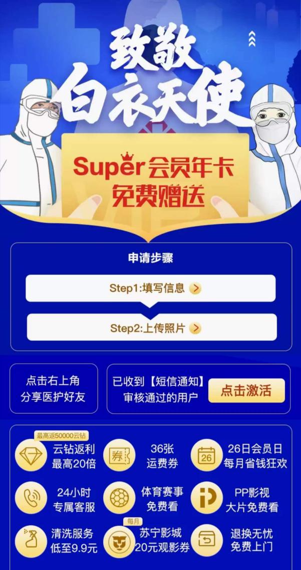 3月30日,蘇寧宣布加碼此次活動(dòng),Super會(huì)員贈(zèng)送對(duì)象不僅包括具備執(zhí)業(yè)資格證書的醫(yī)生和護(hù)士,還包括藥師和技師,藥師和技師包含不限于放射影像科技師、檢驗(yàn)科技師、口腔科技師、藥劑師、康復(fù)治療師等。消息發(fā)布后,藥師申請人數(shù)日均環(huán)比增長達(dá)89%,技師申請人數(shù)日均環(huán)比增長達(dá)145%。醫(yī)院行政、公共衛(wèi)生醫(yī)師、感染管理、海關(guān)衛(wèi)生檢疫人員、救護(hù)車駕駛員、心理治療師、醫(yī)院信息科工程師等人員也紛紛遞交申請。