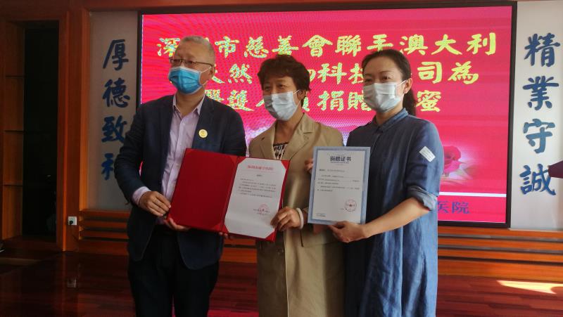 深圳市康寧醫(yī)院黨委書記王建紅,深圳市慈善會(huì)副秘書長(zhǎng)董昕,澳大利亞天然生物科技公司駐中國(guó)辦事處代表全波,深圳市康寧醫(yī)院黨委委員、黨辦主任工會(huì)副主席陳靜,深圳市康寧醫(yī)院工會(huì)女工委主任劉雪琴,深圳市慈善會(huì)社會(huì)幫扶部部長(zhǎng)肖志輝等參加捐贈(zèng)儀式。