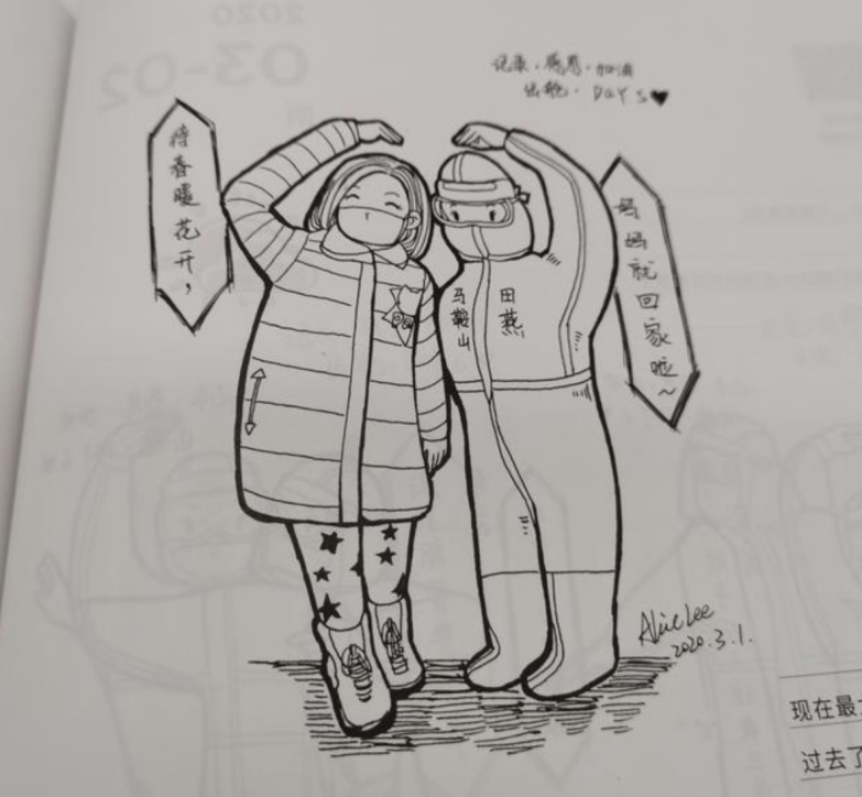 這本書(shū)由中國(guó)國(guó)際廣播出版社出版,共288副原創(chuàng)手繪,黎婧用親身經(jīng)歷記錄了519位“暖心大白”在67天里抗擊新冠病毒的真實(shí)故事,并拍攝59段日記視頻,每一段文字都記錄下白衣天使那無(wú)私無(wú)畏、頑強(qiáng)拼搏的人格魅力;每一幅畫(huà),都再現(xiàn)了大愛(ài)無(wú)疆的醫(yī)護(hù)人員,對(duì)生命的敬畏、對(duì)病人無(wú)微不至的關(guān)愛(ài);每一段視頻,都讓珍貴的瞬間成為了永恒。