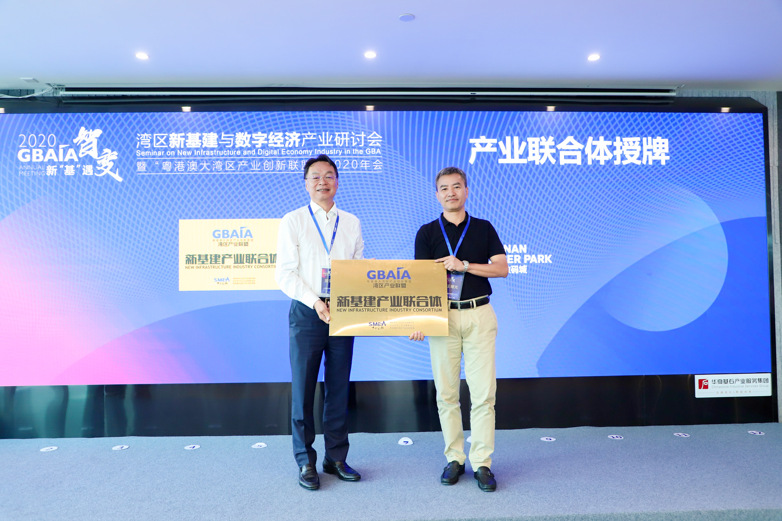 隨后,會議期間還隆重舉行了2020“金灣獎”專家評審團(tuán)授牌,GBAIA新基建產(chǎn)業(yè)聯(lián)合體、GBAIA新材料產(chǎn)業(yè)聯(lián)合體授牌,以及GBAIA灣區(qū)產(chǎn)業(yè)聯(lián)盟新成員授牌儀式。