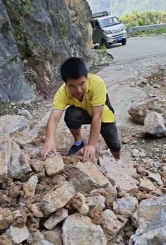 由于前期暴雨天氣,焦厚松車才開到半路,就看到前方的路有了滑坡,緊靠著崖壁的道路已經(jīng)垮了一半。“掉頭還是前行?”焦厚松最終戰(zhàn)勝了猶豫,“答應(yīng)了用戶今天送到,不能就這樣放棄,先看看情況?!彼_始下車觀察路況,發(fā)現(xiàn)主要是碎石堵住了前方七八米的路程。“如果清理一些,車輛就能開過去?!闭f干就干,焦師傅隨后就開始徒手清理路上的石塊。