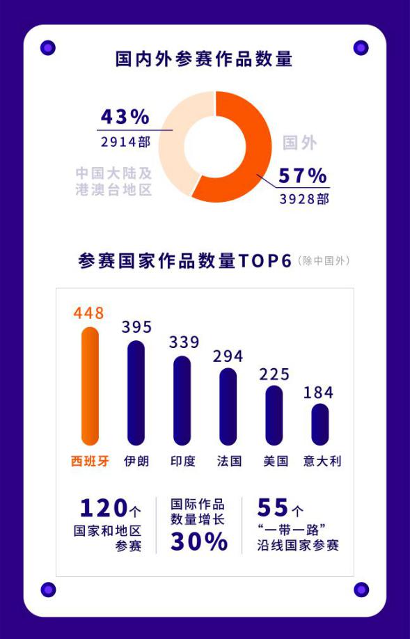 自今年9月中旬全球短片征集啟動(dòng)以來,本屆短片節(jié)獲得來自世界各地創(chuàng)作者的積極響應(yīng),盡管受到新冠疫情影響以及遭遇影視產(chǎn)業(yè)寒冬,但本屆短片節(jié)參賽作品數(shù)量卻逆勢而上,并刷新歷史新高。而且,在今年的6842部參賽作品中,國際參賽作品多達(dá)3928部,數(shù)量較去年增長30%,占作品總量的57%。在今年參賽的120個(gè)國家和地區(qū)中,作品數(shù)量位居前六名的國家分別是西班牙(448部)、伊朗(395部)、印度(339部)、法國(294部)、美國(225部)和意大利(184部)。值得一提的是,作為深圳市參與“一帶一路”建設(shè)重點(diǎn)項(xiàng)目,短片節(jié)今年吸引了來自“一帶一路”沿線的55個(gè)國家參賽,約占目前65個(gè)“一帶一路”沿線國家數(shù)的85%,短片節(jié)作為推動(dòng)“一帶一路”沿線國家間人文交流、促進(jìn)全球跨文化傳播的重要平臺的作用日益凸顯,國際化進(jìn)一步走向深入。