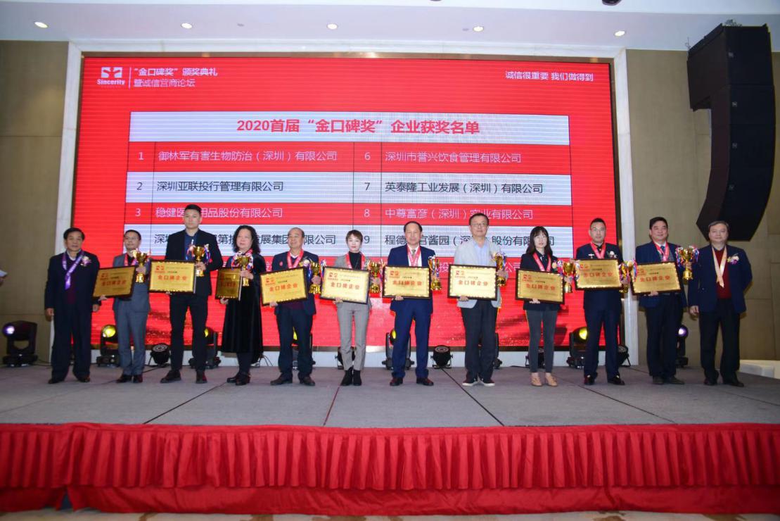 據悉,歷經兩個月的時間,此次金口碑獎評選辦公室共收到了108家企業(yè),549家商戶參選,投票共計86646張,通過資格審查,調查核實、企業(yè)走訪及嚴謹細致的專家評審,龍華區(qū)10家知名企業(yè)——御林軍有害生物防治(深圳)有限公司、深圳亞聯(lián)投行管理有限公司、穩(wěn)健醫(yī)療用品股份有限公司、深圳市書香門第投資發(fā)展集團有限公司、深圳市安宏基房地產開發(fā)有限公司、深圳市譽興飲食管理有限公司、英泰隆工業(yè)發(fā)展(深圳)有限公司、中尊富彥(深圳)實業(yè)有限公司、程德馨官醬園(深圳)股份有限公司、深圳市恒冠投資實業(yè)有限公司以及萬眾城家居、大浪商業(yè)中心及優(yōu)城等30家知名商戶榮膺“金口碑獎”稱號,頒獎典禮現場均給予榮譽表彰。