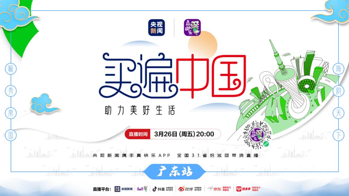 大潮起珠江,弄潮正當(dāng)時。3月嶺南百花盛放,城市地標(biāo)廣州塔上珠江溫潤的氣息撲面而來,“買遍中國”廣東站將于3月26日,在這個城市新中軸線與珠江景觀軸交匯處正式開啟,全國人民都可通過真快樂APP、央視新聞APP、央視新聞抖音官方賬號、京東及拼多多國美官方旗艦店等平臺觀看直播,共同領(lǐng)略嶺南特色、廣府傳承。
