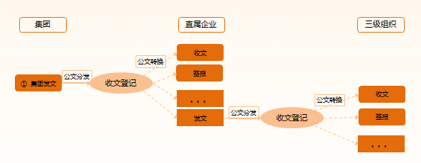 2.公文從集團分發(fā)到直屬企業(yè)后,支持單據(jù)轉(zhuǎn)換,便于直屬企業(yè)依據(jù)自己管理模式進行相應公文處理