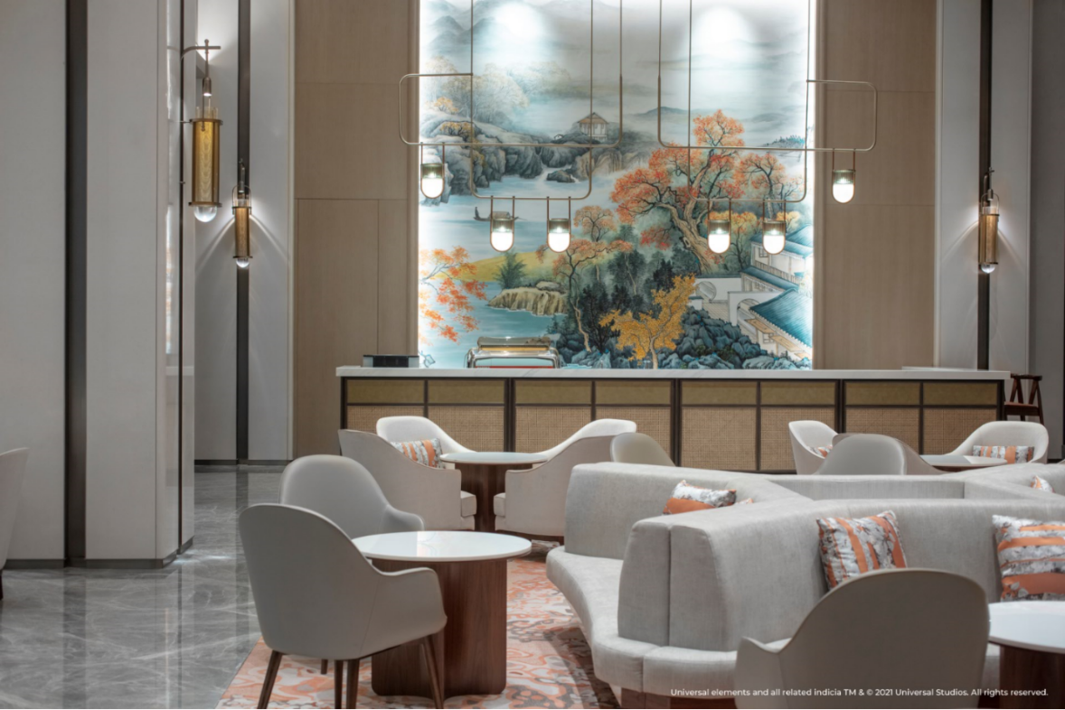 環(huán)球影城大酒店位于北京環(huán)球影城主題公園入口,入住賓客將可以俯瞰園區(qū)的絕佳景觀。作為全球首家以環(huán)球品牌命名的主題酒店,環(huán)球影城大酒店在設(shè)計(jì)中融入了極具加州特色的西班牙復(fù)興風(fēng)格,巧妙再現(xiàn)好萊塢電影黃金時(shí)代的輝煌與風(fēng)華,同時(shí)結(jié)合了中性色調(diào)的現(xiàn)代演繹以及繽紛色彩點(diǎn)綴。酒店大堂內(nèi)西班牙風(fēng)格的噴泉和玻璃馬賽克三角梅花墻帶來(lái)輕快靈動(dòng)的熱帶海岸氣息,定制的橙花調(diào)香氛則令人仿佛置身加州,讓賓客感受到典雅而充滿(mǎn)活力的度假氛圍。酒店公共區(qū)域內(nèi)的珍貴電影海報(bào)將帶領(lǐng)賓客探尋動(dòng)人心扉的光影世界背后,精彩絕倫卻不為人知的創(chuàng)作瞬間。從復(fù)古經(jīng)典系列,到現(xiàn)代電影杰作,更有大量的幕后花絮呈現(xiàn)一段歷久彌新的電影之旅,回溯環(huán)球超過(guò)一個(gè)世紀(jì)的電影歷史的光輝歷程,致敬品牌在光影史上的耕耘與貢獻(xiàn)。