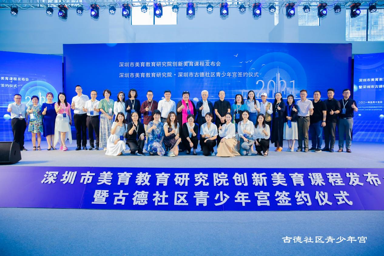 深圳市美育教育研究院創(chuàng)新美育課程發(fā)布會(huì)暨古德社區(qū)青少年宮簽約儀式上嘉賓合影