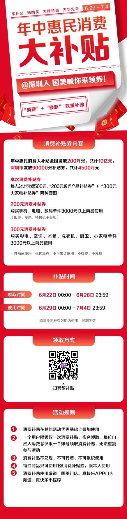 目前,“年中惠民消費大補貼”消費補貼券正在發(fā)放中,并將一直持續(xù)到6月28日23點59分。期間,廣大消費者可以在國美線上平臺“真快樂”中“我的”“真快樂券”頁面,領(lǐng)取補貼券后,消費者可在6月29日-7月4日期間選購商品使用。實名專享,名額有限,機不可失。