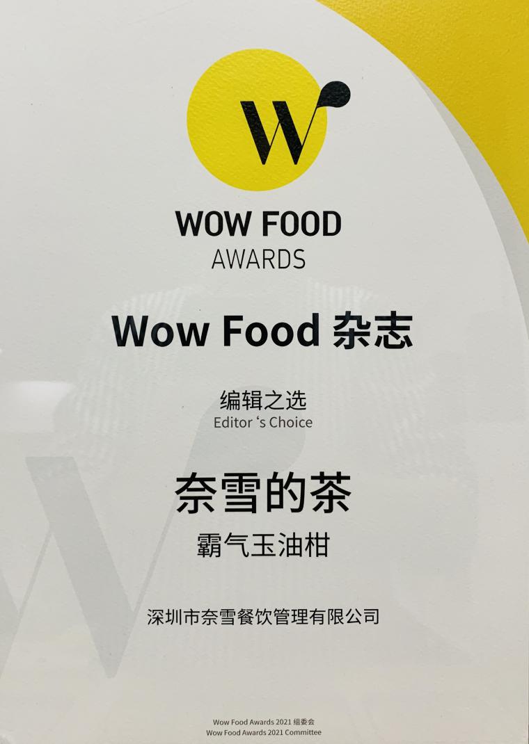 讀特客戶端·深圳新聞網(wǎng)2021年7月15日訊(記者 田志強)近日,由FBIF食品飲料創(chuàng)新論壇策劃主辦的第四屆Wow Food Awards(WFA,原Hello Foods Prize新品大賞)——全球創(chuàng)新食品評鑒大賽獲獎作品揭曉儀式暨頒獎典禮在杭舉行。本屆WFA共有54款產(chǎn)品獲得“最佳品類獎”,其中奈雪的茶推出的“霸氣玉油柑”產(chǎn)品特色突出,獲得了Wow Food雜志“編輯之選”的榮譽稱號。