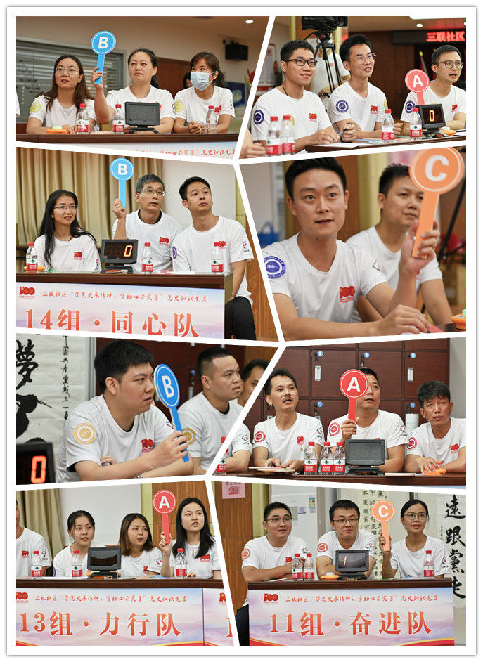 此次比賽分為初賽和決賽兩個(gè)階段,初賽為兩兩PK晉級制,來自社區(qū)黨委下屬各黨支部、轄區(qū)各共建單位等組成的14支代表隊(duì)分七組進(jìn)行了激烈的角逐,最終7支隊(duì)伍脫穎而出,登上決賽擂臺。