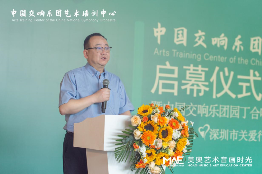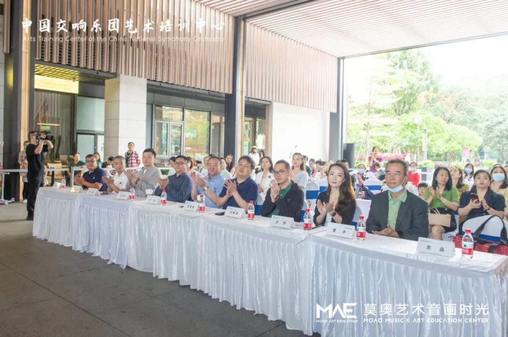 中國交響樂團(tuán)副團(tuán)長尹波、南山區(qū)文化廣電旅游體育局黨組成員、副局長任艷峰、中國交響樂團(tuán)藝術(shù)培訓(xùn)中心主任王曉柯、中國交響樂團(tuán)藝術(shù)培訓(xùn)中心深圳負(fù)責(zé)人韓仕英、華僑城歡樂時(shí)光項(xiàng)目負(fù)責(zé)人鄧皋峰、深圳市關(guān)愛行動(dòng)基金會(huì)副秘書長魏平、莫奧藝術(shù)音畫時(shí)光校長王婷、莫奧藝術(shù)音畫時(shí)光行政總監(jiān)曹克等嘉賓出席了開幕儀式。