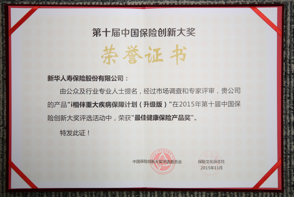 2015年最佳健康保險(xiǎn)產(chǎn)品獎(jiǎng)