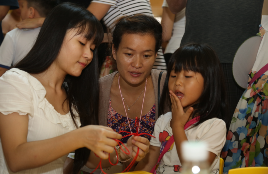 此外,中國結(jié)、素面扇繪畫、剪紙等體驗區(qū)域,也擠滿了小朋友。家長們用手機(jī)記錄下孩子體驗制作的過程,對老師們的現(xiàn)場演示贊不絕口。