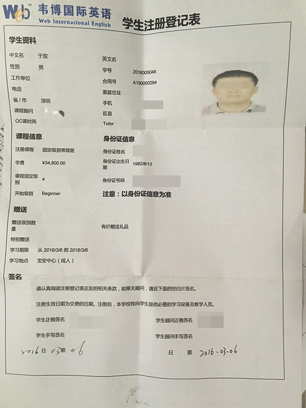 投訴對象:深圳韋博英語培訓(xùn)中心