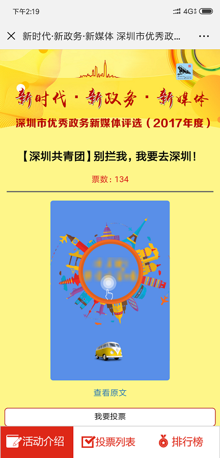 作為中國(guó)"最互聯(lián)網(wǎng)城市〃,深圳近年來(lái)大力建 設(shè)政務(wù)新媒體平臺(tái)矩陣,不斷建立健全工作機(jī)制,搭 建起為市民服務(wù)的新渠道、新平臺(tái),涌現(xiàn)出許多優(yōu)秀 的政務(wù)新媒體。廣大市民網(wǎng)友,有哪些政務(wù)微信么, 讓你"欲罷不能〃,有哪位小編讓你〃刻骨銘心〃, 有哪些作品讓你"秒轉(zhuǎn)秒贊"?請(qǐng)為他們投上寶貴一 票吧!本次投票活動(dòng)作為"新時(shí)代新政務(wù)備體"—— 深圳市優(yōu)秀政務(wù)新媒體評(píng)選(2017年度)活動(dòng)的重要 組成部分,其結(jié)果將作為專家評(píng)審類(lèi)獎(jiǎng)項(xiàng)評(píng)選的重要 參考細(xì),權(quán)重占比50%。
